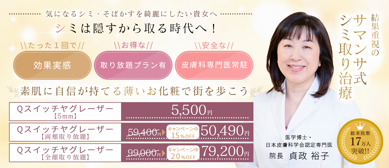 練馬区にある皮膚科・美容皮膚科のサマンサクリニック院長貞政裕子です。